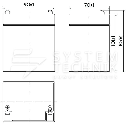 - Срок хранения без подзаряда: 6 мес. при 25°C;