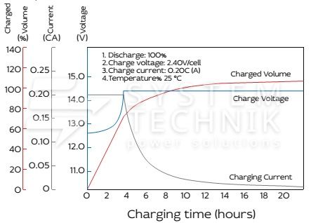 - Срок хранения без подзаряда: 6 мес. при 25°C;