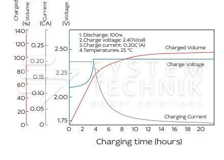 - Номинальное напряжение: 2В. Максимально допустимый ток заряда: 0,2C;