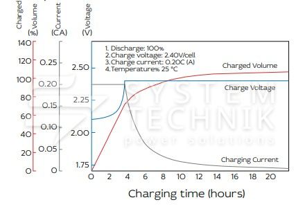 - Номинальное напряжение: 2В. Максимально допустимый ток заряда: 0,2C;