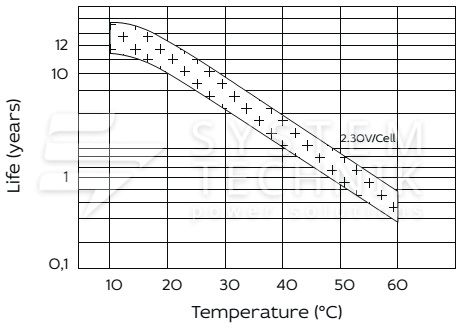 - Срок хранения без подзаряда: 6 мес. при 25°C;