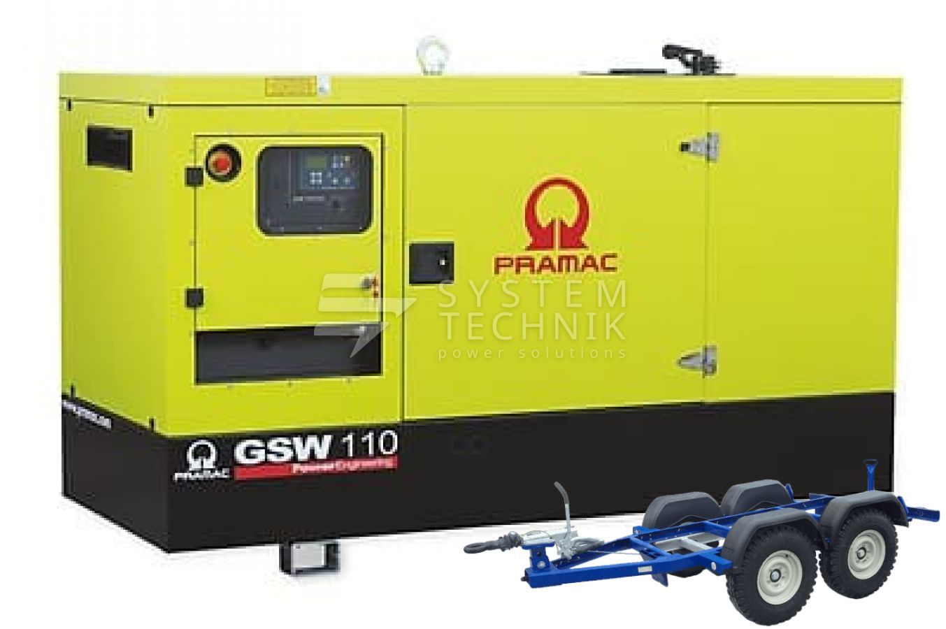 - Дизельный генератор Pramac GSW 110 V 480V В кожухе на прицепе