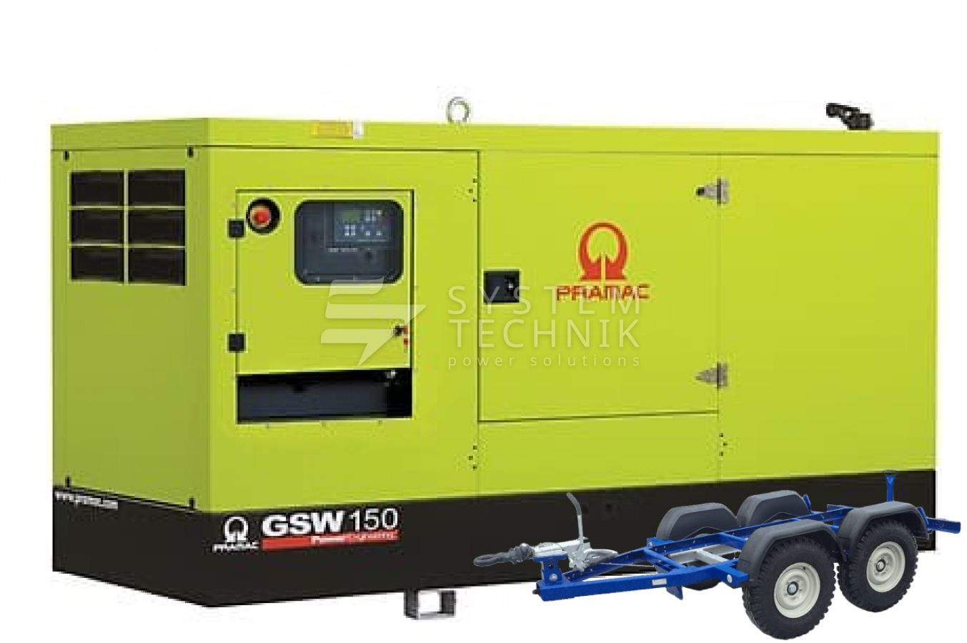 - Дизельный генератор Pramac GSW 150 V 400V В кожухе на прицепе