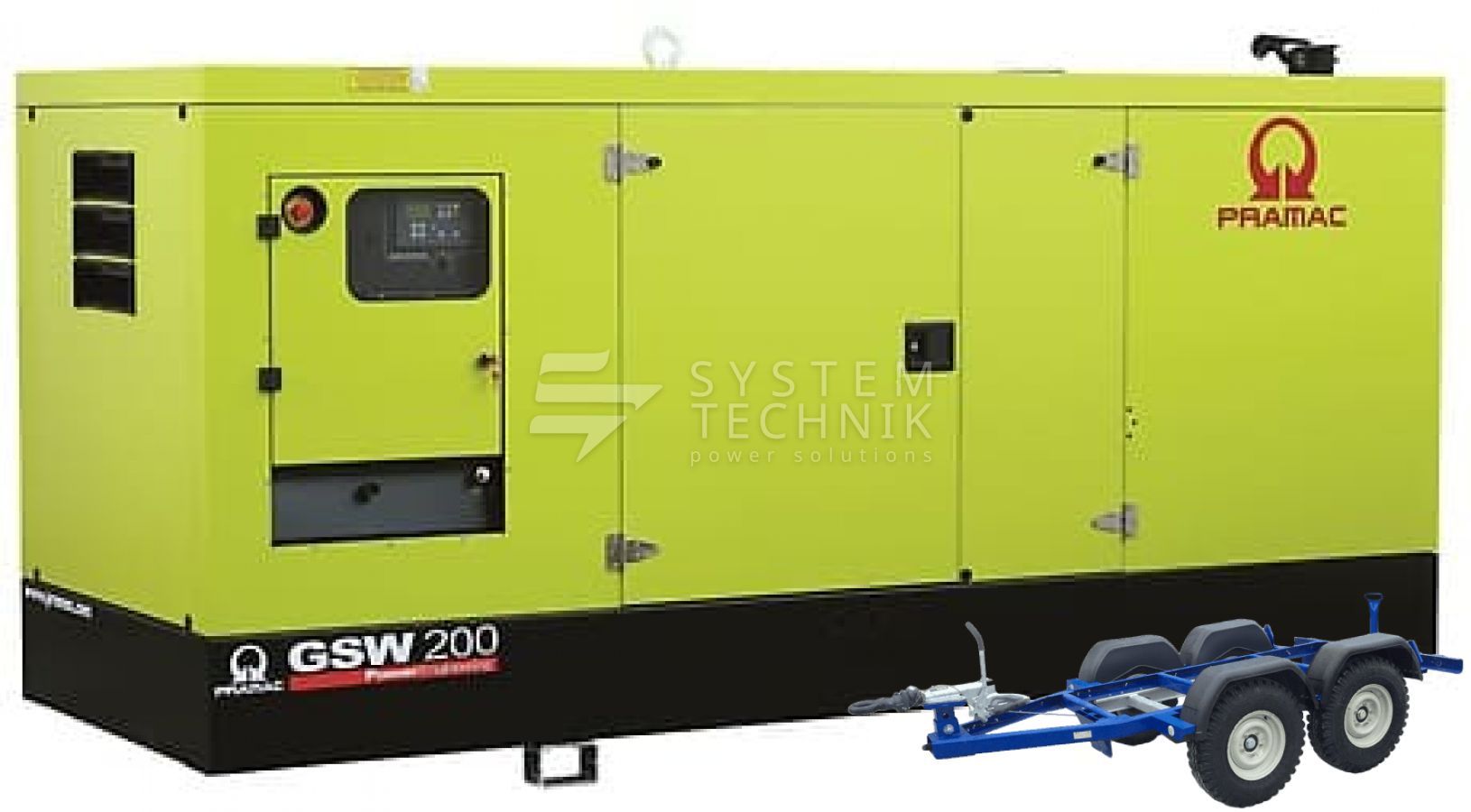 - Дизельный генератор Pramac GSW 200 P 480V В кожухе на прицепе