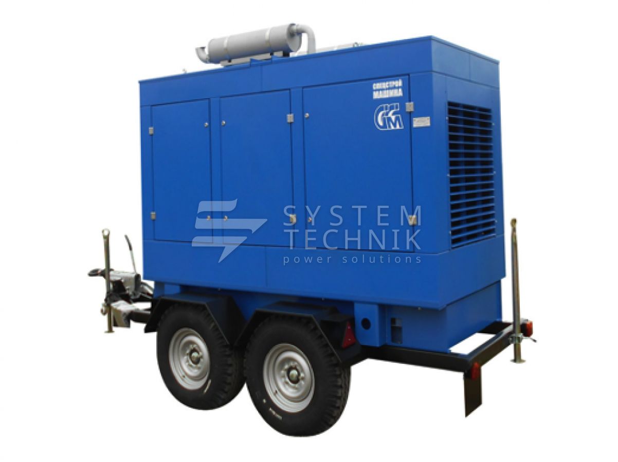 - ССМ ЭД-100-Т400-1РПМ2 (Marelli) в погодозащитном кожухе на шасси на прицепе