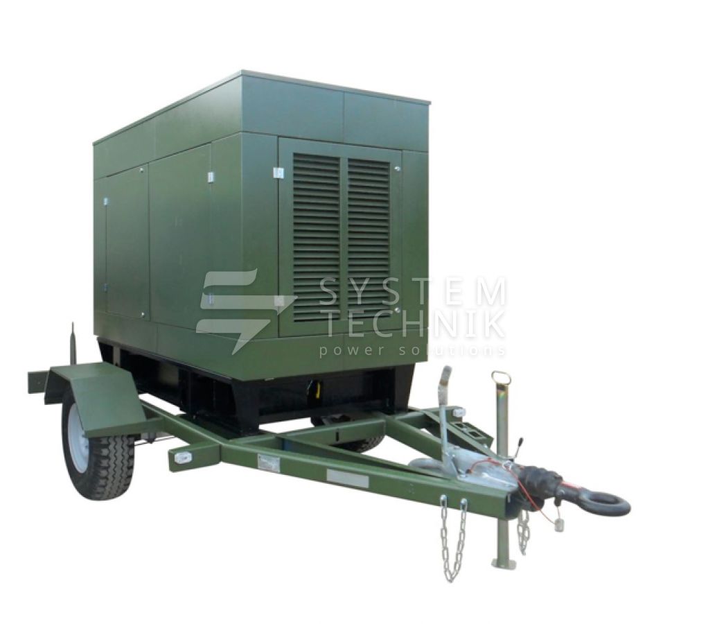 - ССМ ЭД-50-Т400-1РКМ1 в шумозащитном кожухе на шасси на прицепе