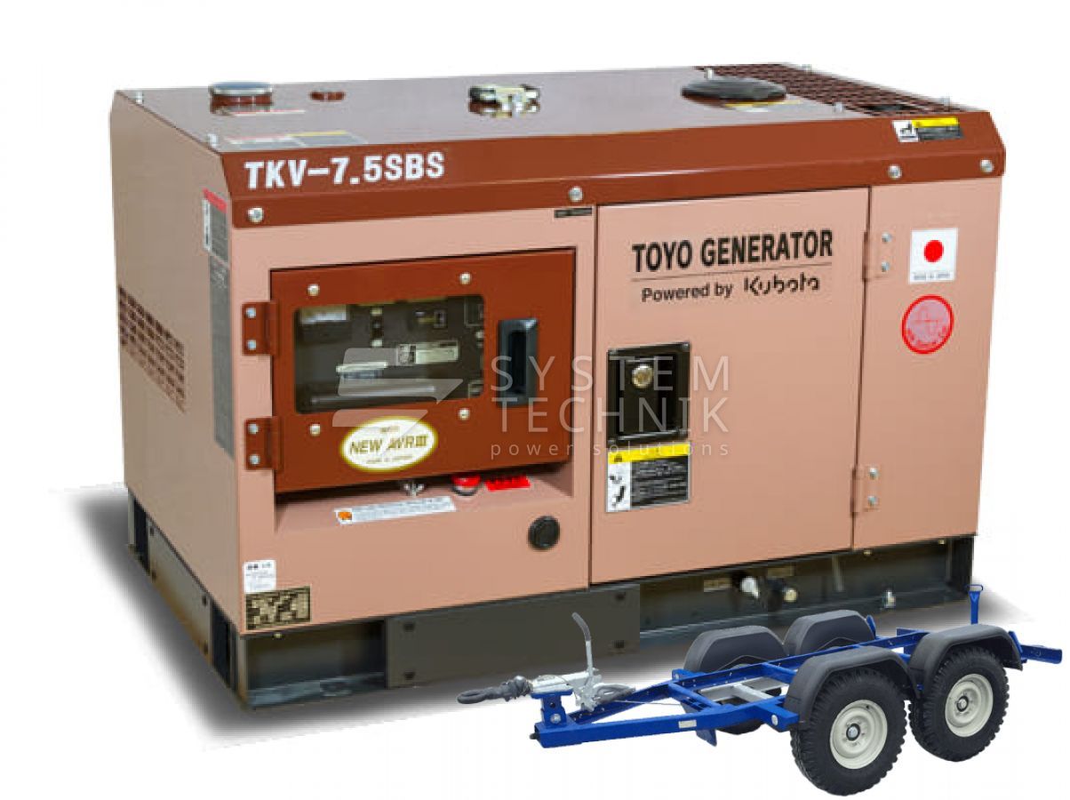 - Дизельный генератор Toyo TKV-7.5SBS В кожухе на прицепе