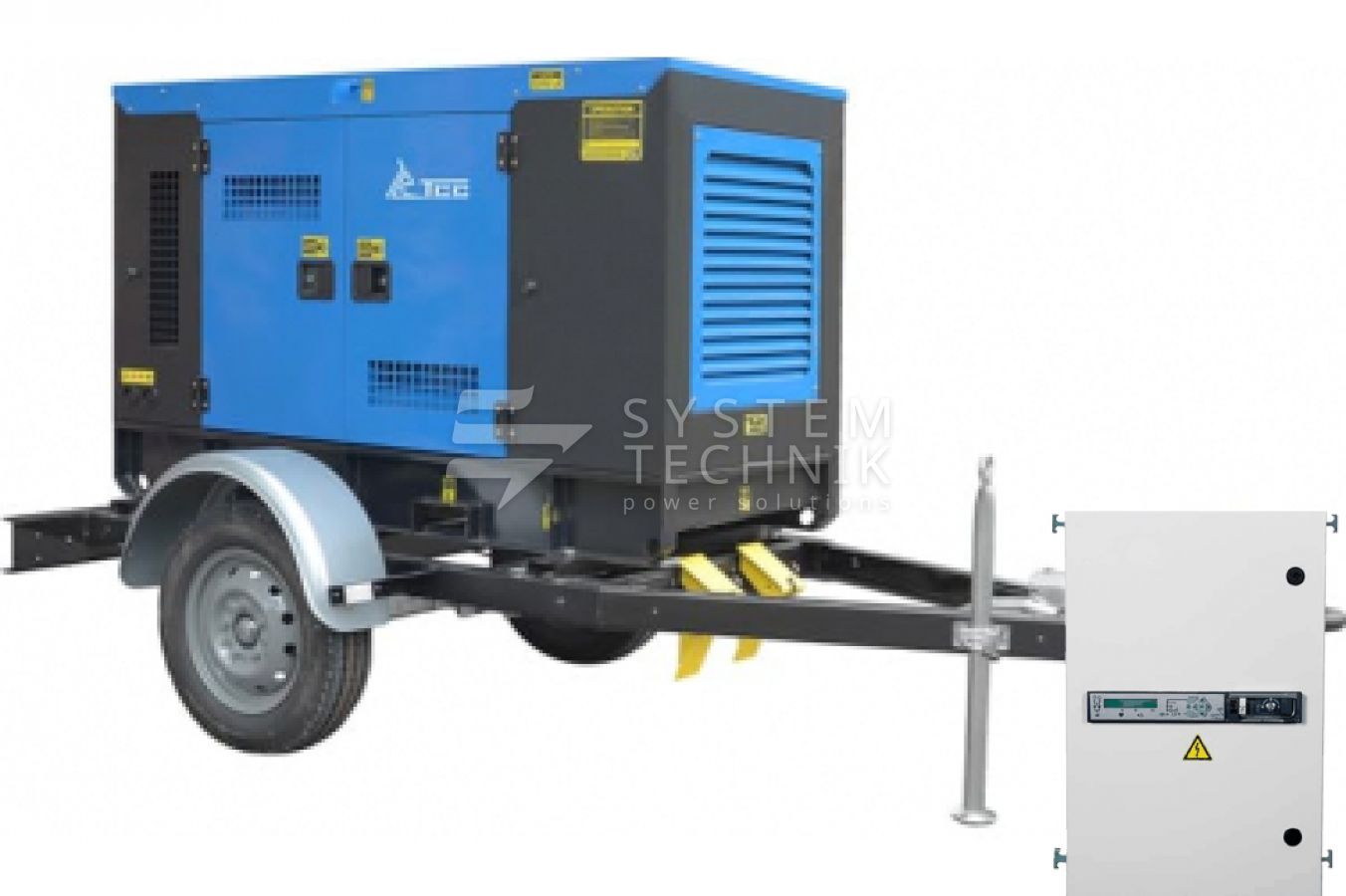 - ТСС ЭД-250-Т400-2РКМ26 в шумозащитном кожухе на прицепе с АВР