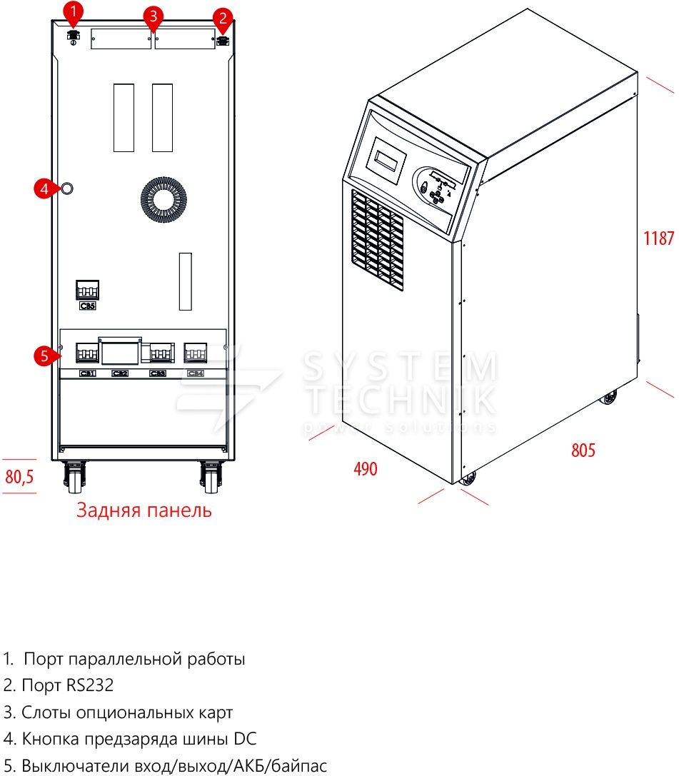 | Тип ИБП | двойного преобразования (on-line) |