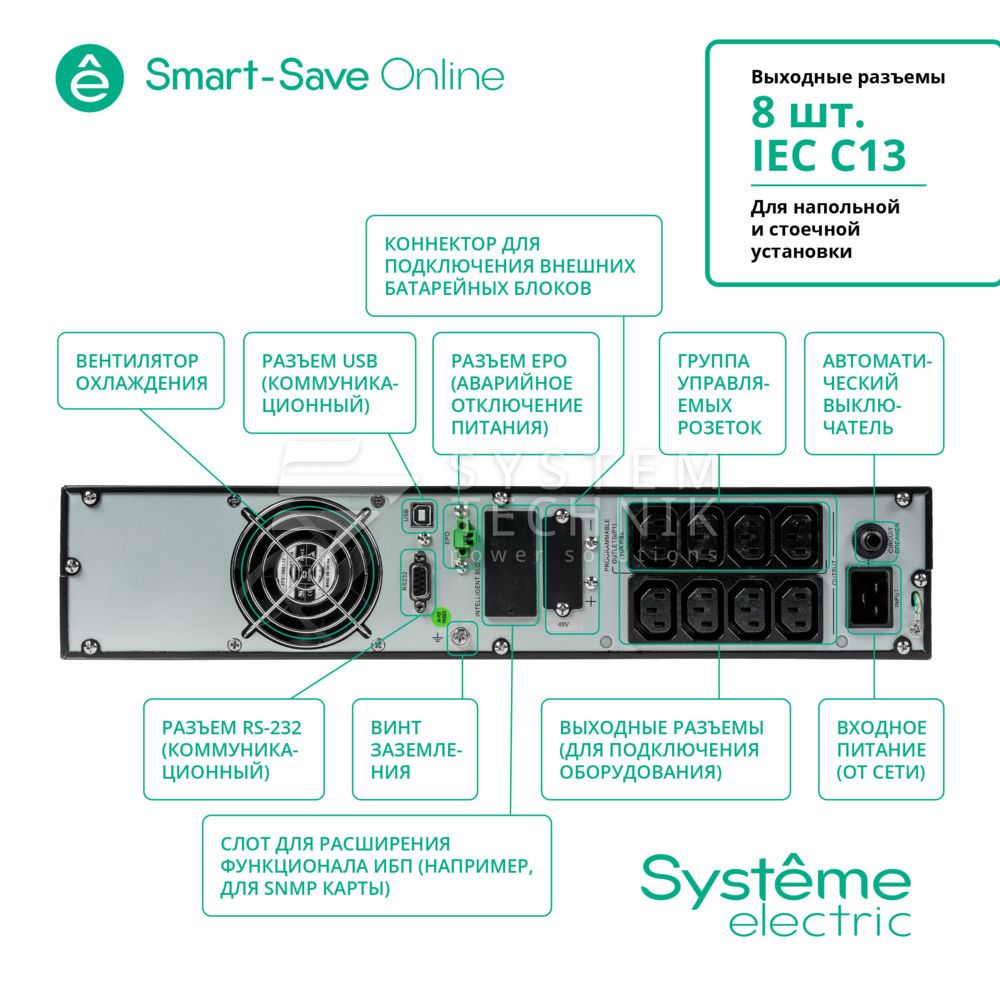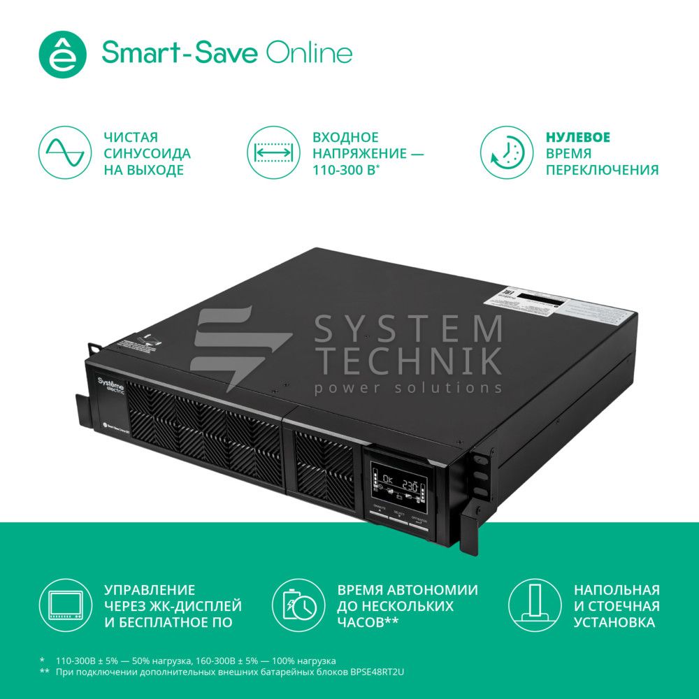 | Тип ИБП | двойного преобразования (on-line) |
